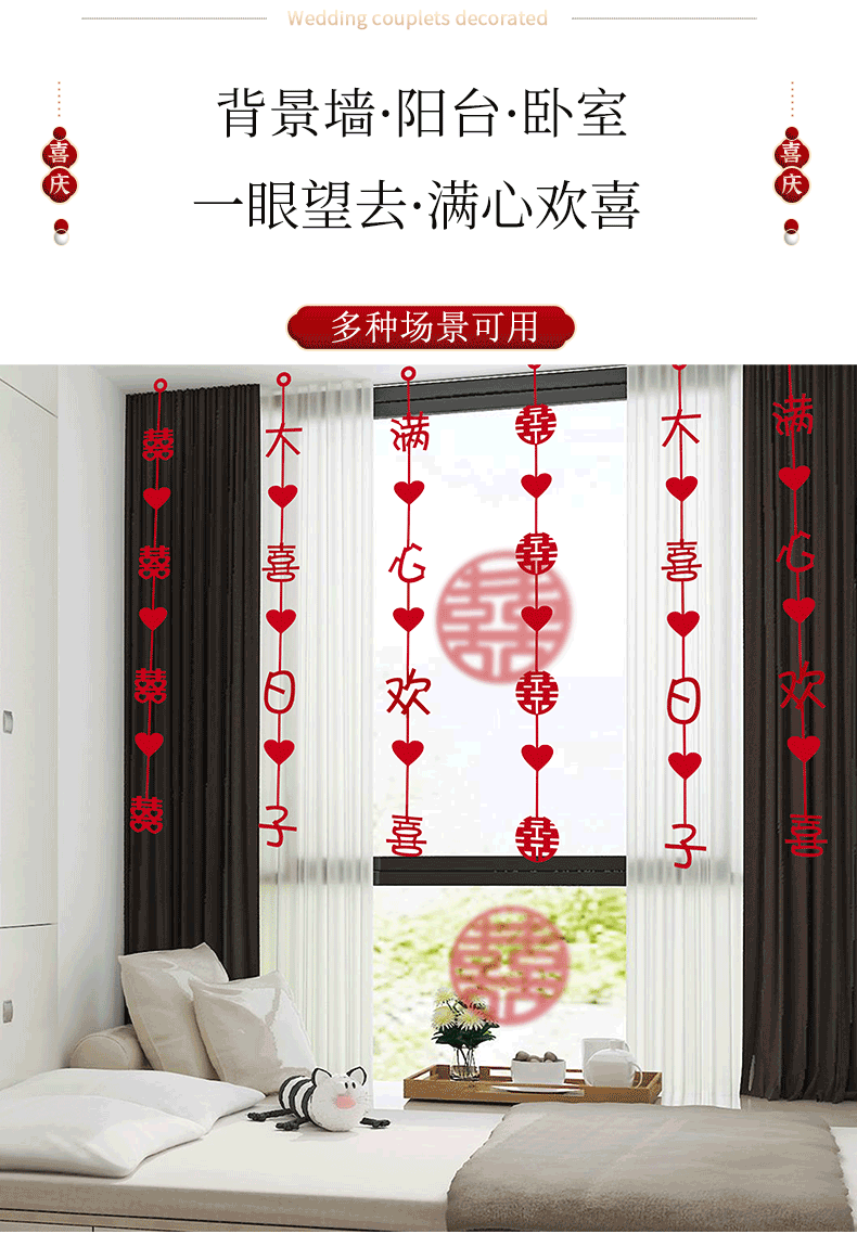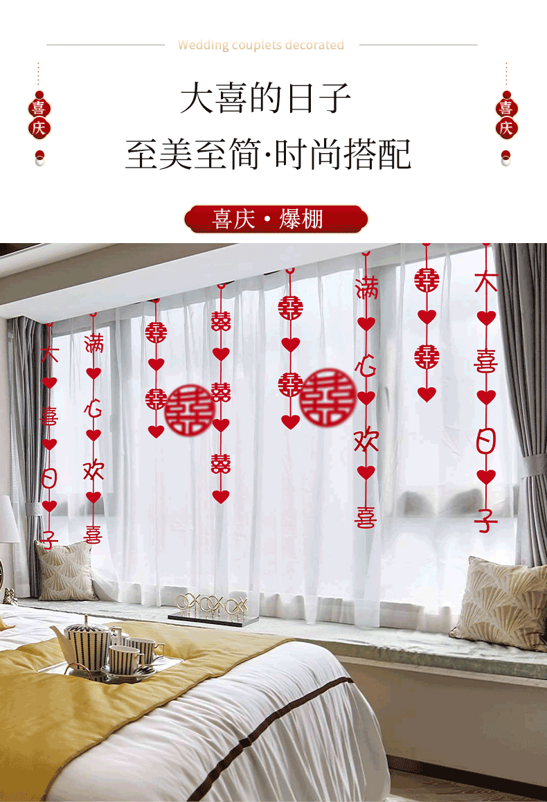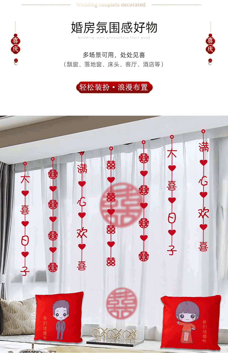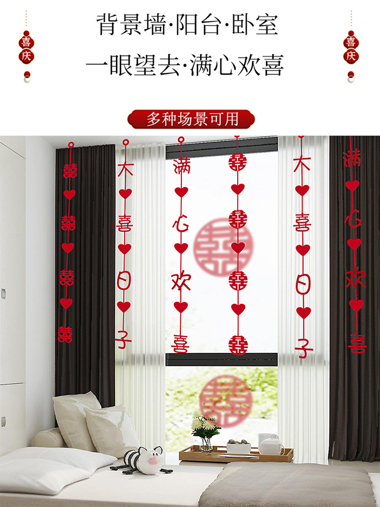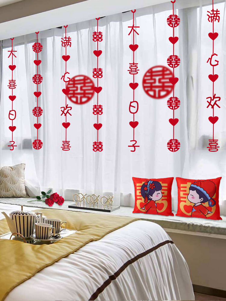 婚房布置套装结婚礼装饰新房卧室客厅男女方喜字拉花窗帘装饰挂件