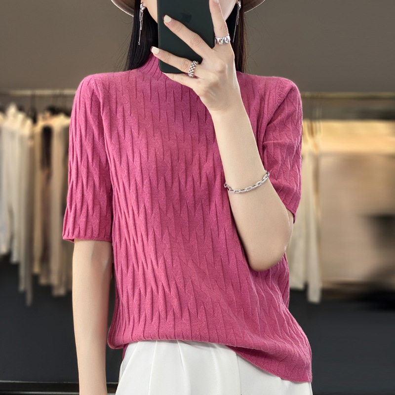 ¥32针织坑条短袖T恤女2023夏季新款时尚百搭半高领薄款半袖女代批发已有0+条评价机构名称3立即购买 -
