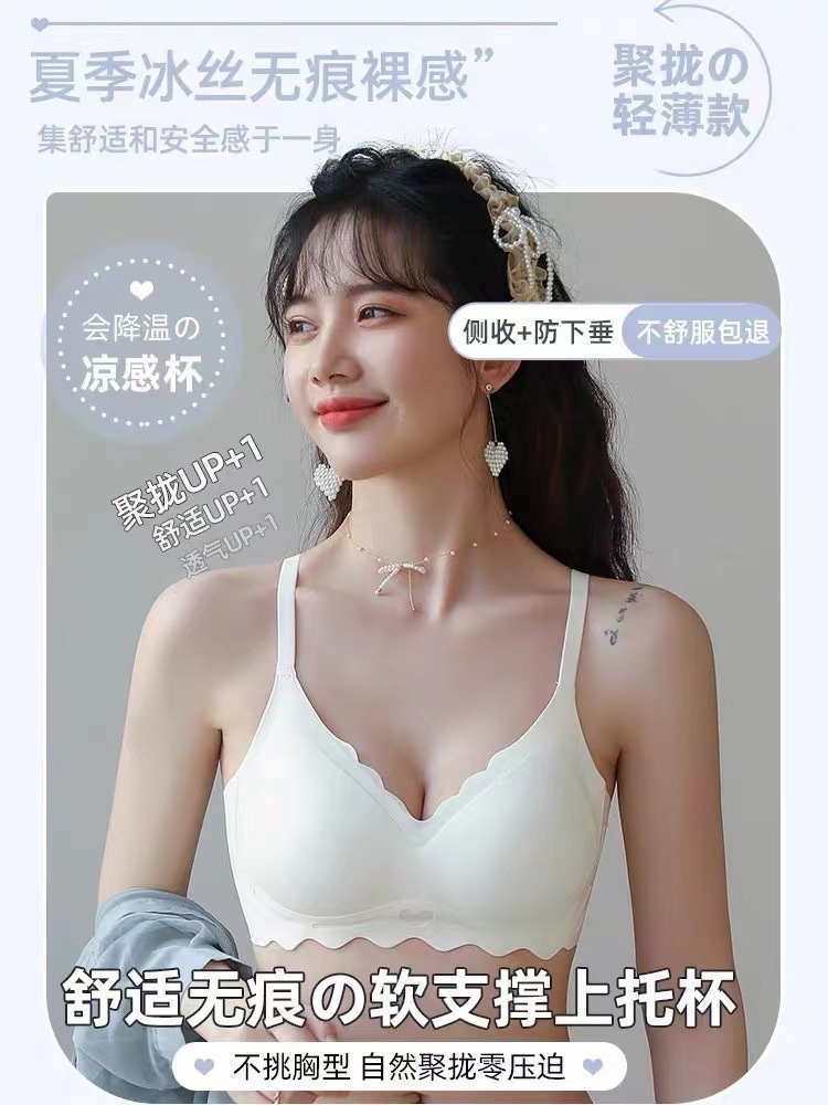天使之心无痕一体式内衣防下垂聚拢小胸薄款文胸运动少女士文胸罩