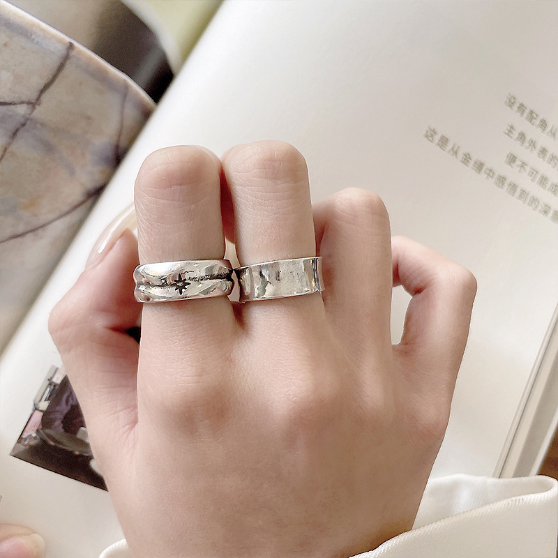 岚芷 925银戒指不掉色个性网红手饰品朋克嘻哈开口纯银戒指批发女