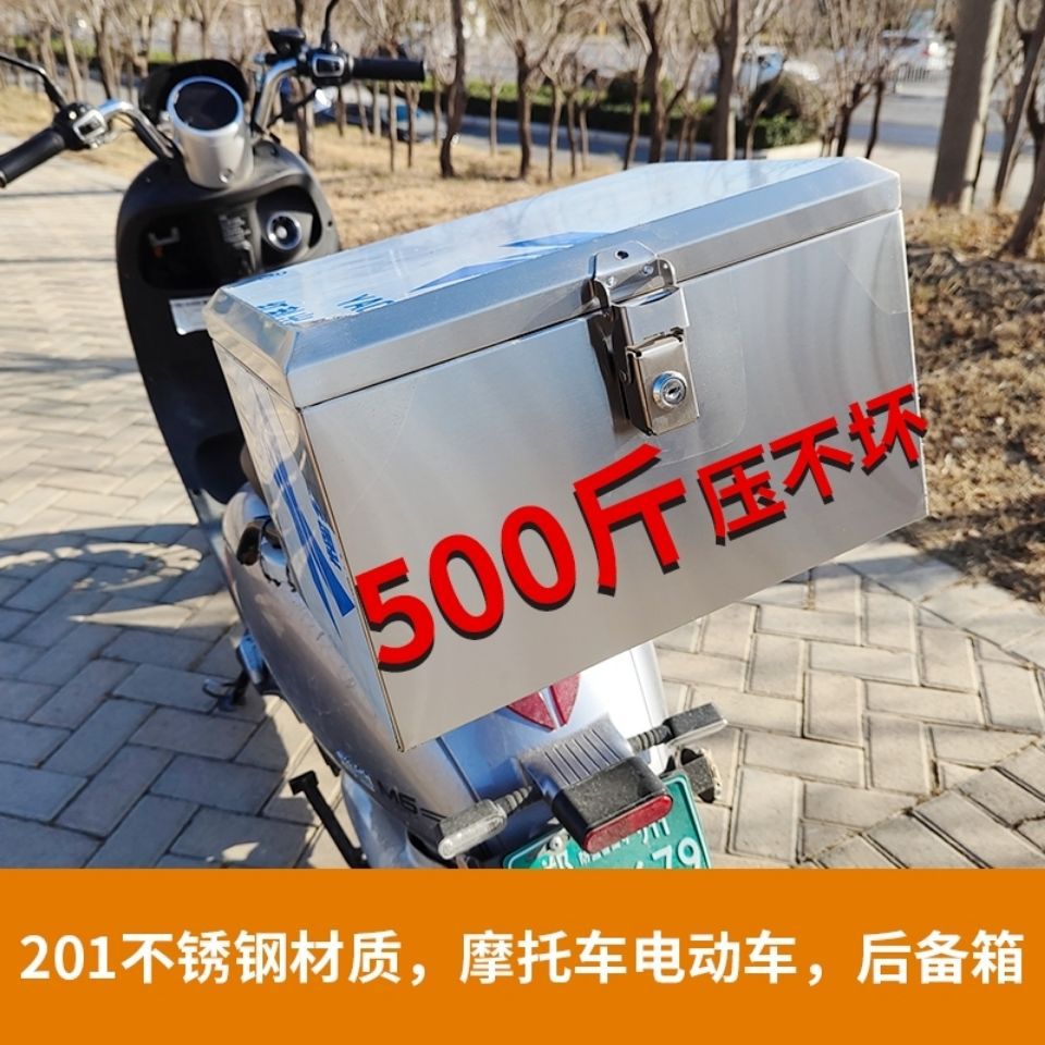 摩托车不锈钢后备箱通用加厚电动车踏板车大号尾箱防水外卖工具箱