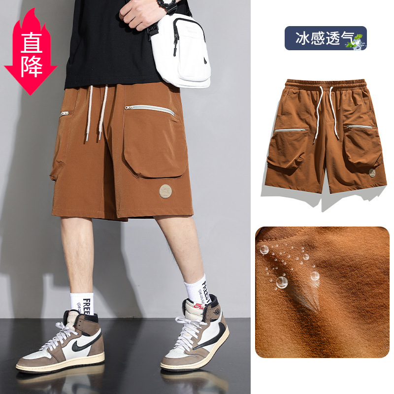 青少年夏季新款薄款男装ins休闲裤工装裤多口袋户外多功能短裤男