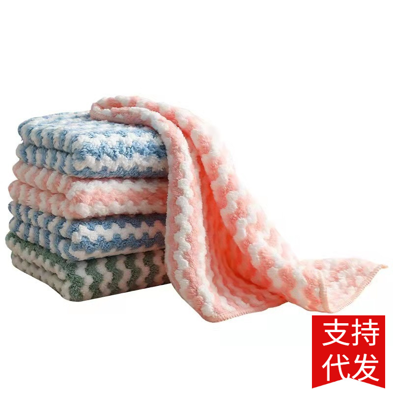 条纹款抹布 珊瑚绒不沾油不掉毛洗碗巾 加厚竹纤维清