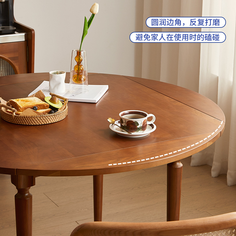 复古北欧实木折叠圆形桌家用樱桃木可伸缩方小户型方圆餐桌椅组合