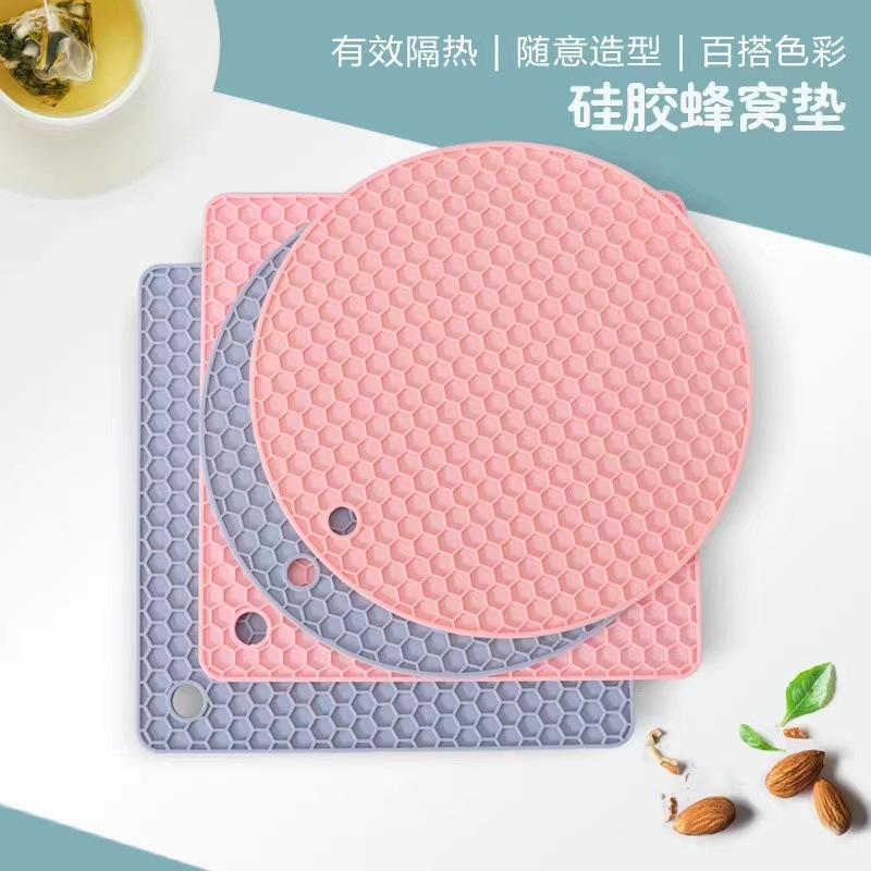 北欧风圆形加厚硅胶蜂窝垫餐杯垫防滑隔热垫环保耐高温易清洗