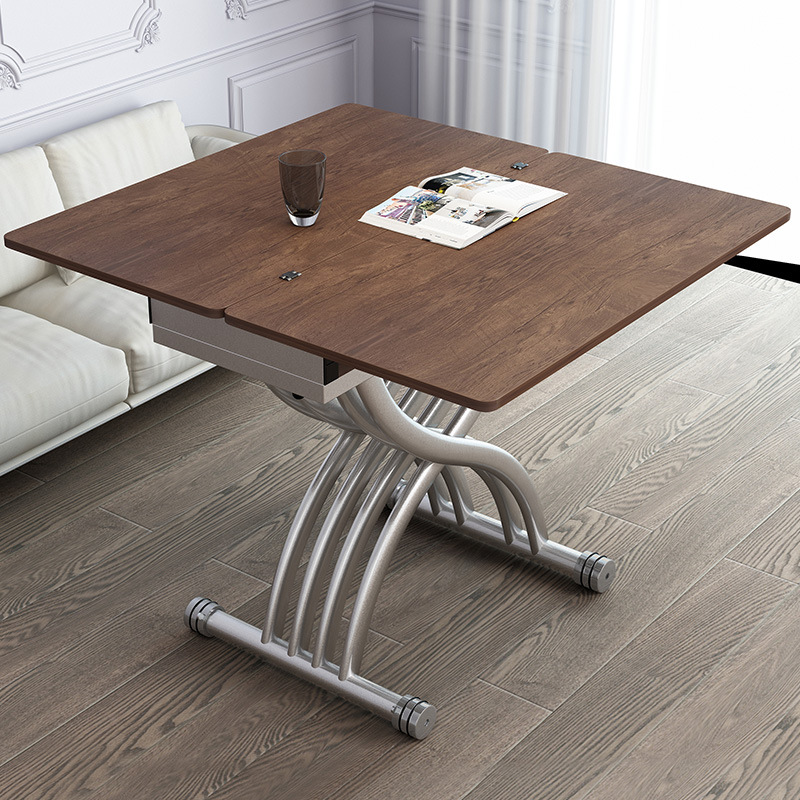 多功能折叠升降餐桌原木茶几一体式小户型方形家用移动伸缩秒变桌