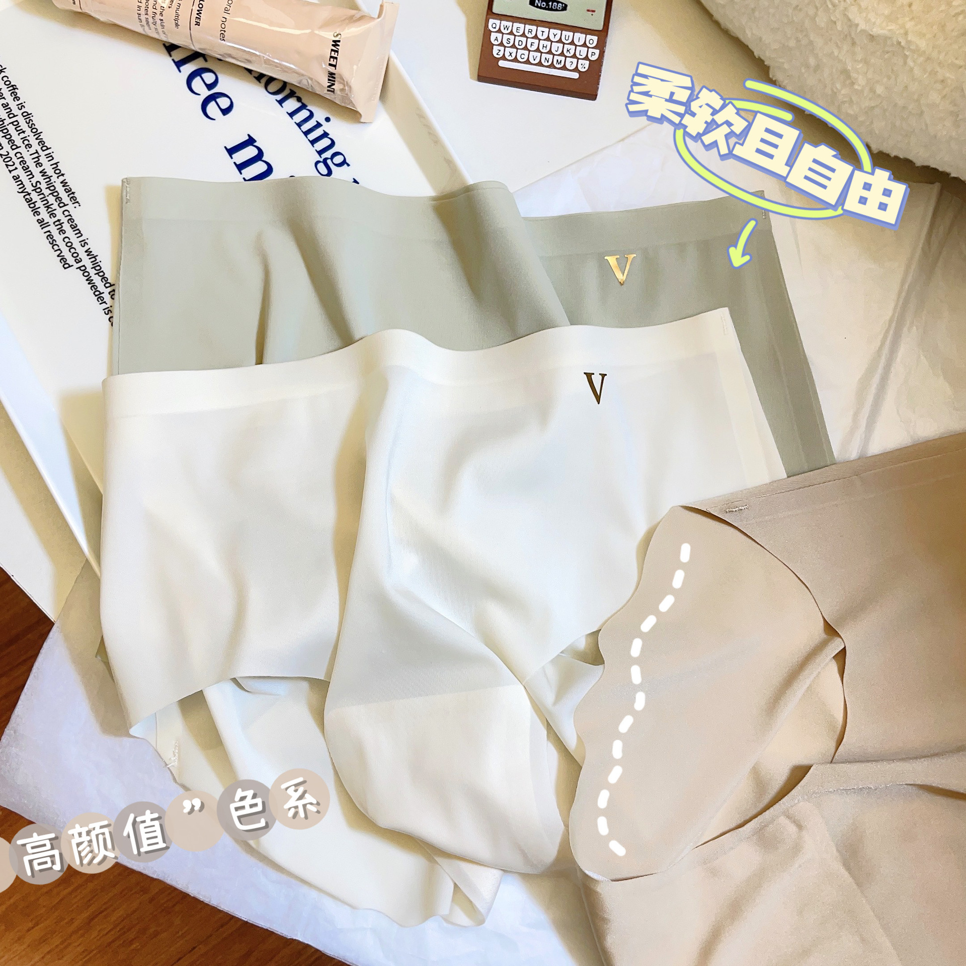 日系3D提臀简约冰丝面膜内裤女夏季轻薄裸感一片式包臀女士三角裤