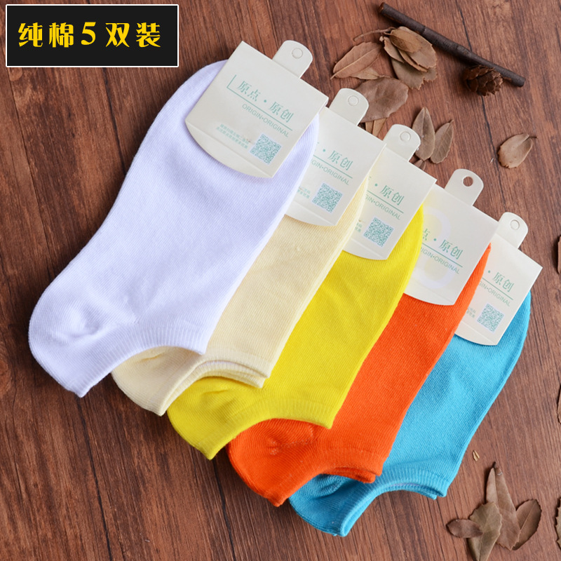 5双装低帮浅口棉文艺简约纯色短袜子吸汗男女士百搭船袜夏季薄