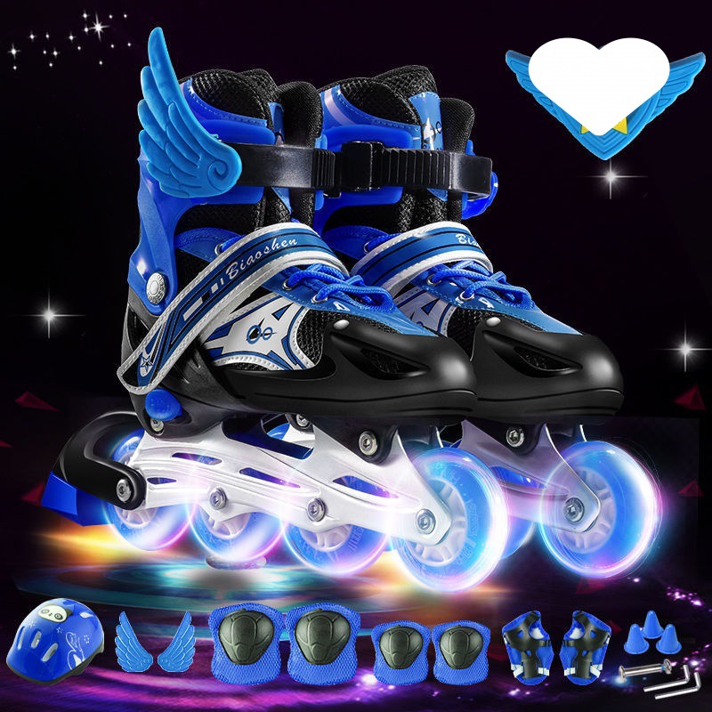 轮滑鞋儿童款溜冰鞋儿童套装男童女童旱冰鞋直排尺码可调闪光厂家