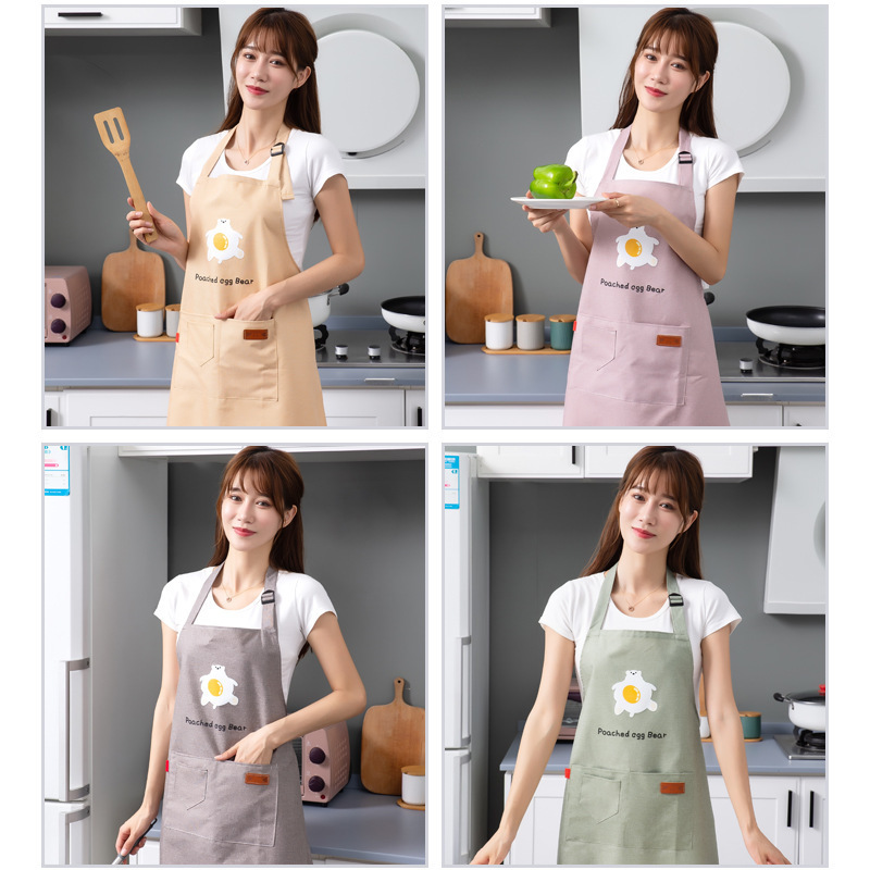 防水棉麻阳离子围裙卡通鸡蛋熊围裙定制logo居家厨房围裙批发代发