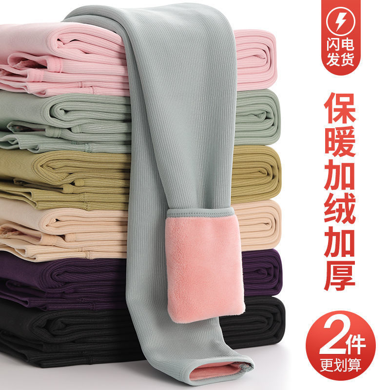 加绒加厚保暖裤女士冬季秋裤线裤内穿紧身学生中腰单件打底裤衬裤