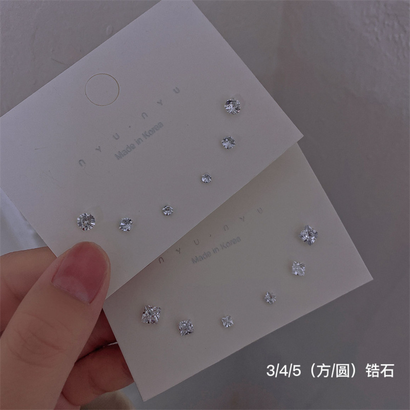s925纯银几何锆石耳钉防过敏简约小巧冷淡风精致耳骨钉养耳洞睡觉