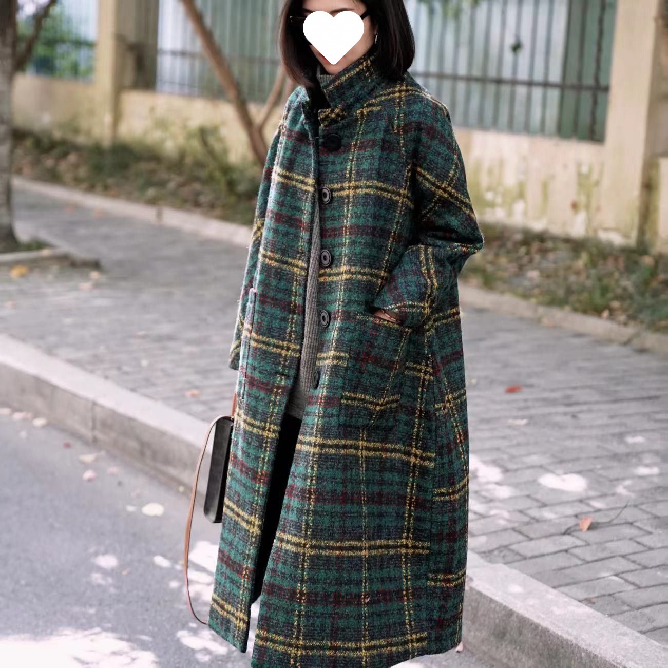 复古格子大衣女2022冬季新款加厚宽松休闲大码韩版显瘦显个外套潮