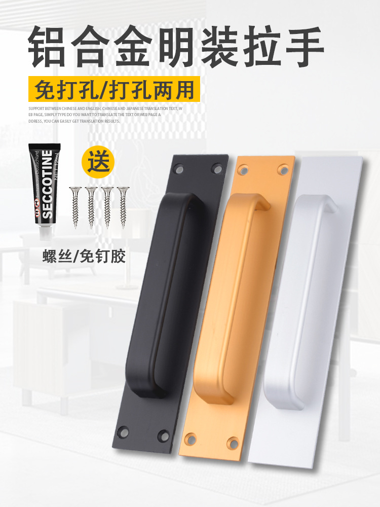 免打孔窗户铝合金柜门拉手明装哑黑卫生间门把手木门大门衣柜把手