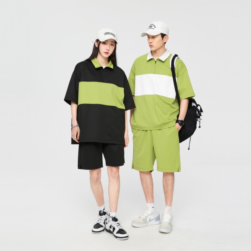 男士夏季运动装情侣款休闲运动套装痞帅高端Polo衫体恤搭配一套男