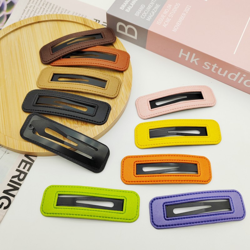 韩式彩色皮质发夹少女BB夹碎发侧边刘海夹头饰后脑勺发卡网红发饰