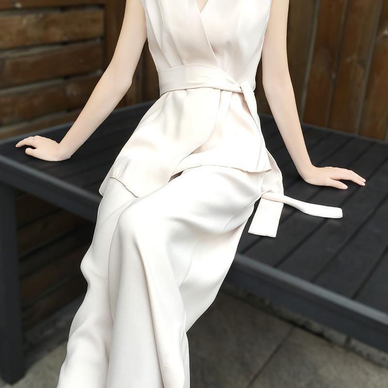 春夏新款短袖系带民族名媛女神范气质阔腿裤两件套领时尚套装女