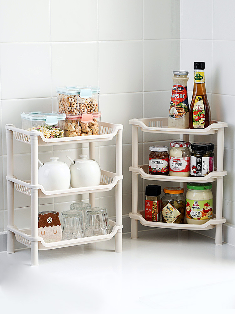 家用桌面三层收纳架 厨房台面置物架 卫生间转角化妆品整理储物架