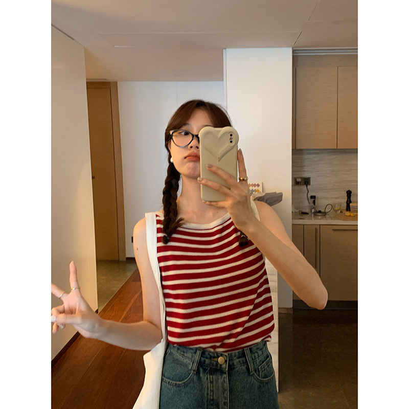 【歌铭】拼色条纹针织吊带背心女夏季新款内搭外穿无袖上衣W463A