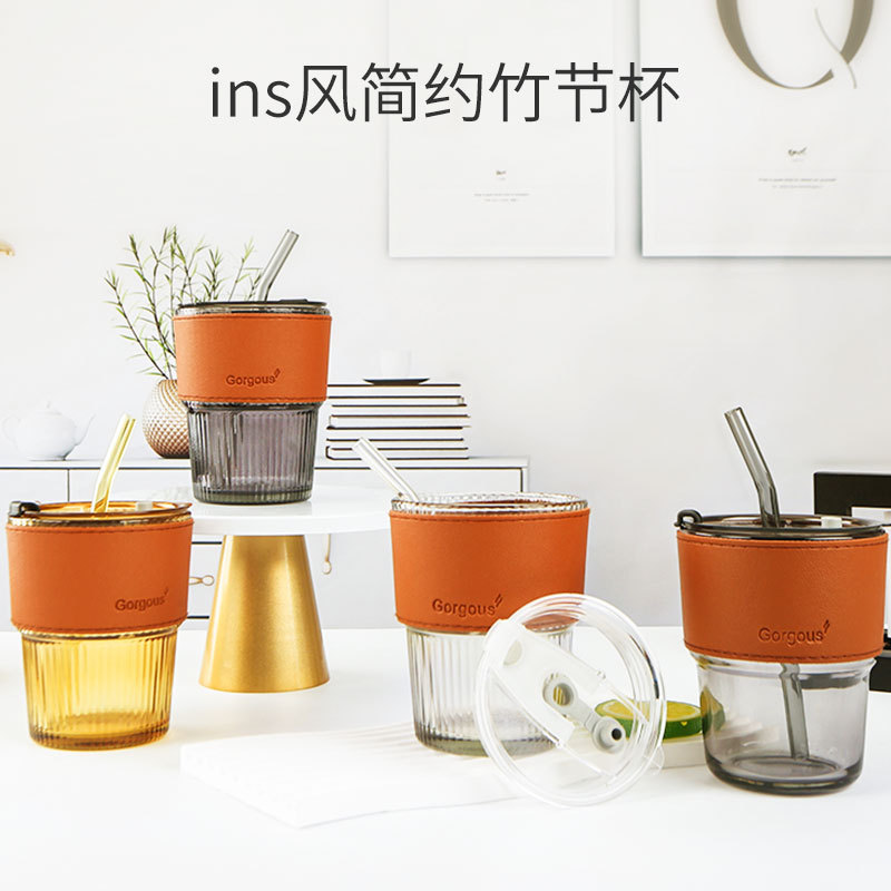 网红竹节杯子玻璃杯早餐杯情侣礼品家用办公室咖啡泡茶吸管杯批发