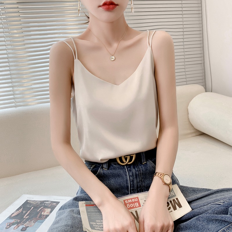 真丝吊带背心女V领带花型春夏新款无袖内搭配小西装外穿美背打底
