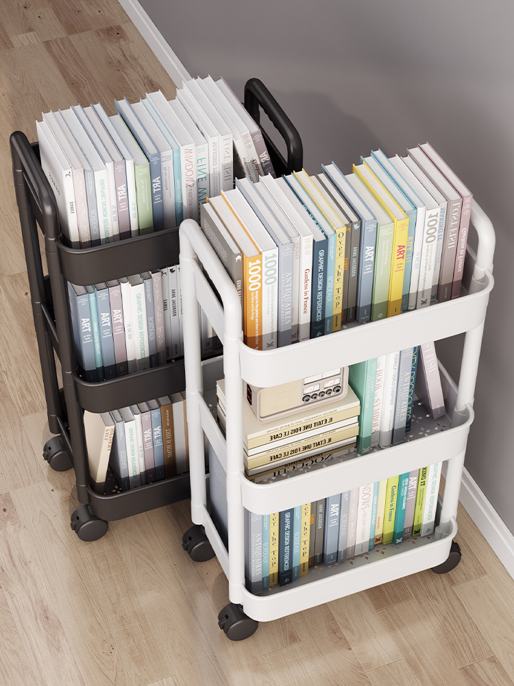 可移动书架置物架儿童玩具收纳架阅读家用小推车带轮落地简易书柜