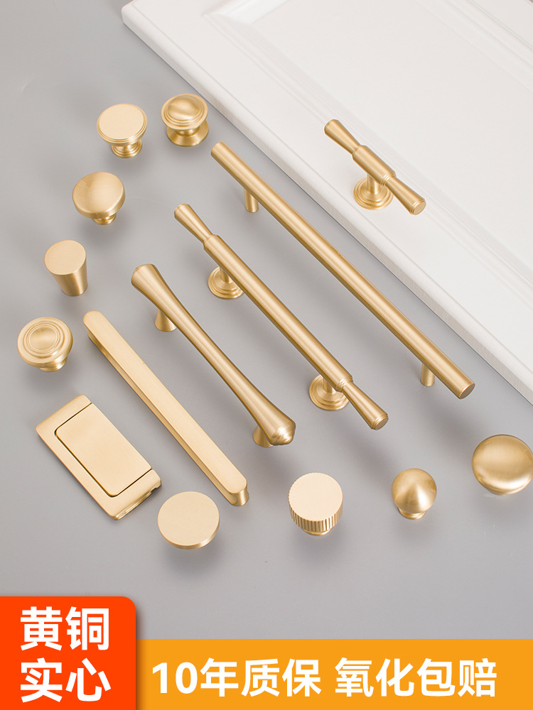 黄铜拉手鞋柜抽屉橱柜五金纯铜拉手衣柜门把手简约金色单孔长拉手