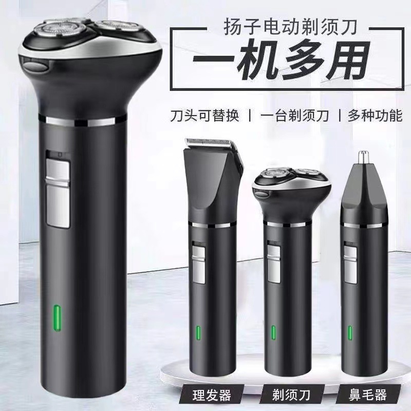 网红爆款扬子剃须刀三合一多功能刮胡刀USB大功率剃须刀水洗剔刀