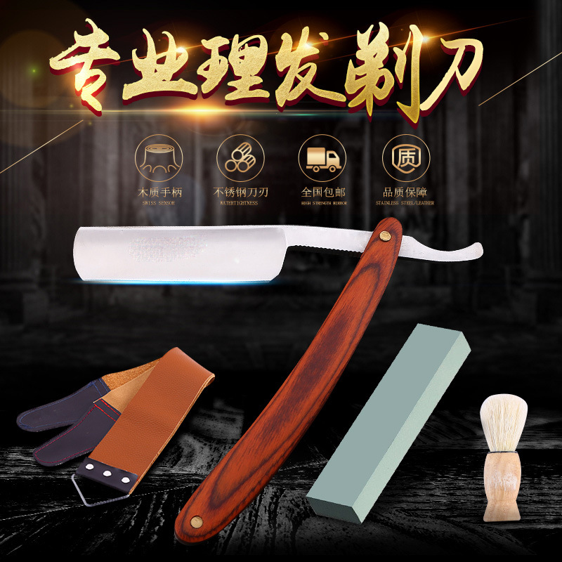 手动剃须刀送荡刀布清洁刷磨刀老式刮胡刀红木手柄发廊理发店剃刀