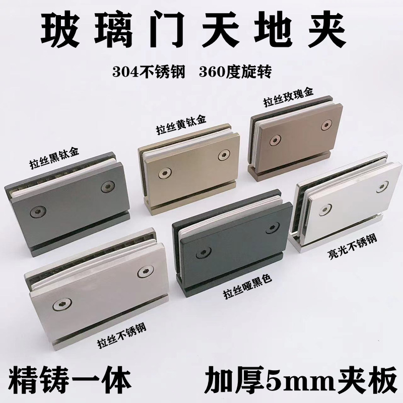 玻璃门天地夹360度旋转轴304不锈钢黑色钛金玫瑰金浴室门夹展示柜
