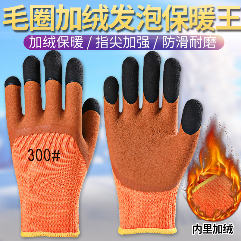 手套劳保加厚耐磨工作胶皮男工地干活冷库保暖加绒冬季防水工作