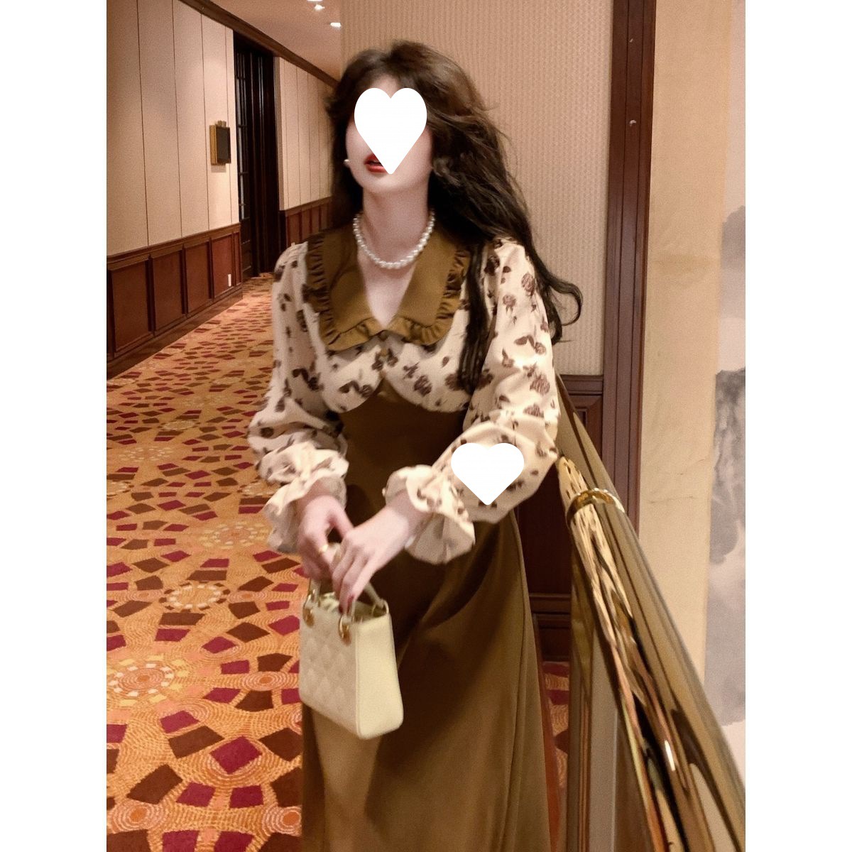 2022秋季新款时尚气质小众设计感 拼接甜美连衣裙简约通勤可爱潮