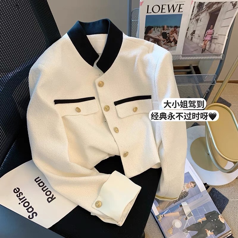 小香风金属扣卷边短款外套女秋季2022新款高级感时尚气质长袖上衣