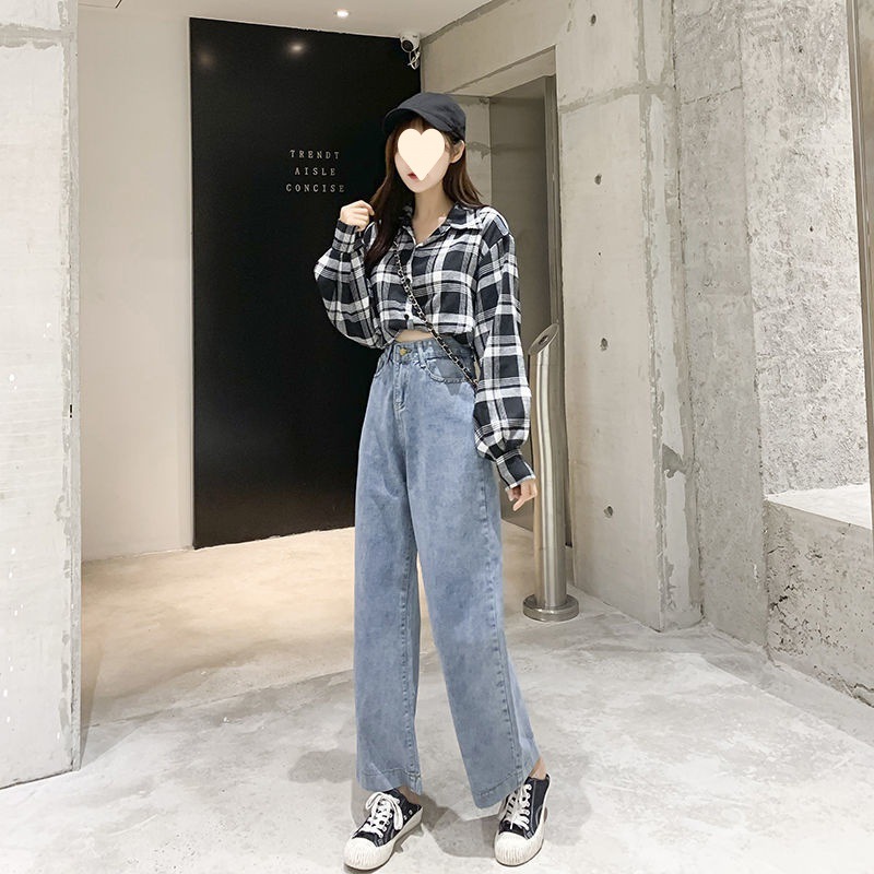 春夏新款松紧腰拖地牛仔裤女韩版宽松百搭直筒牛显瘦长裤女潮