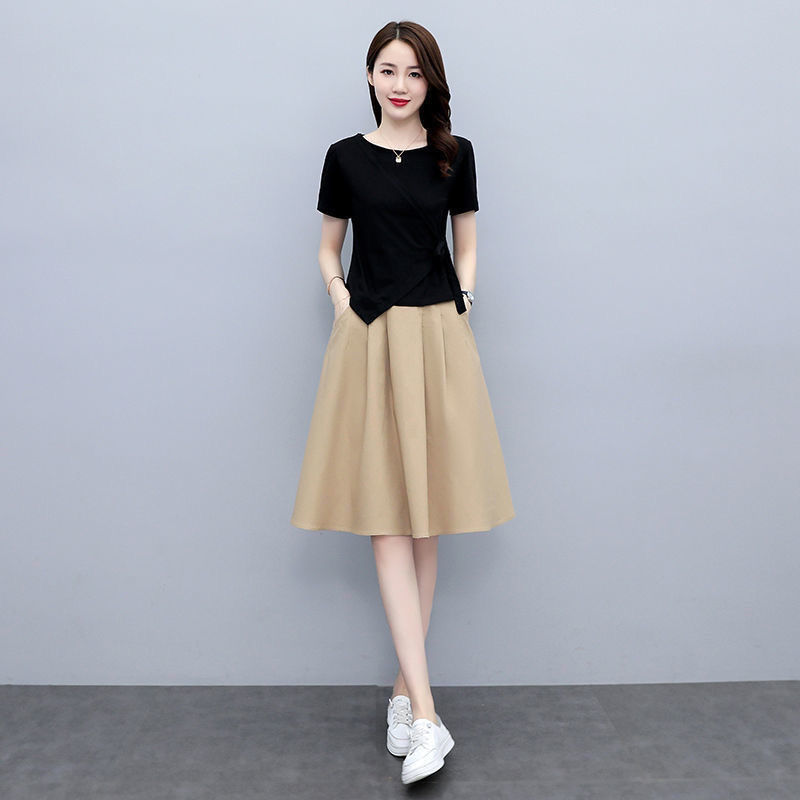 亚麻连衣裙套装女夏季新款膝盖裙气质显瘦修身棉麻裙子两件套