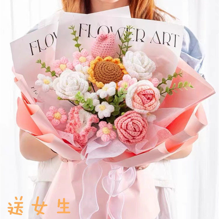 毛线花成品批发花毛线花束礼盒送女友七夕开学季送老师教师节