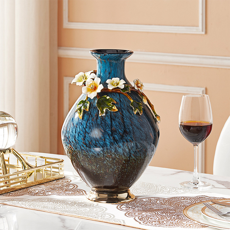 珐琅彩高档花瓶摆件家居轻奢欧式客厅玄关电视柜插花装新中式饰品