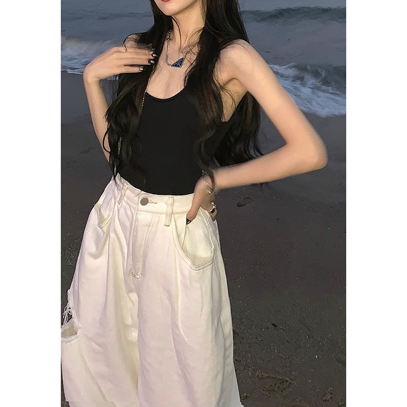 白色破洞牛仔长裤女牛仔裤夏季新款韩版高腰百搭直筒阔腿长裤子潮