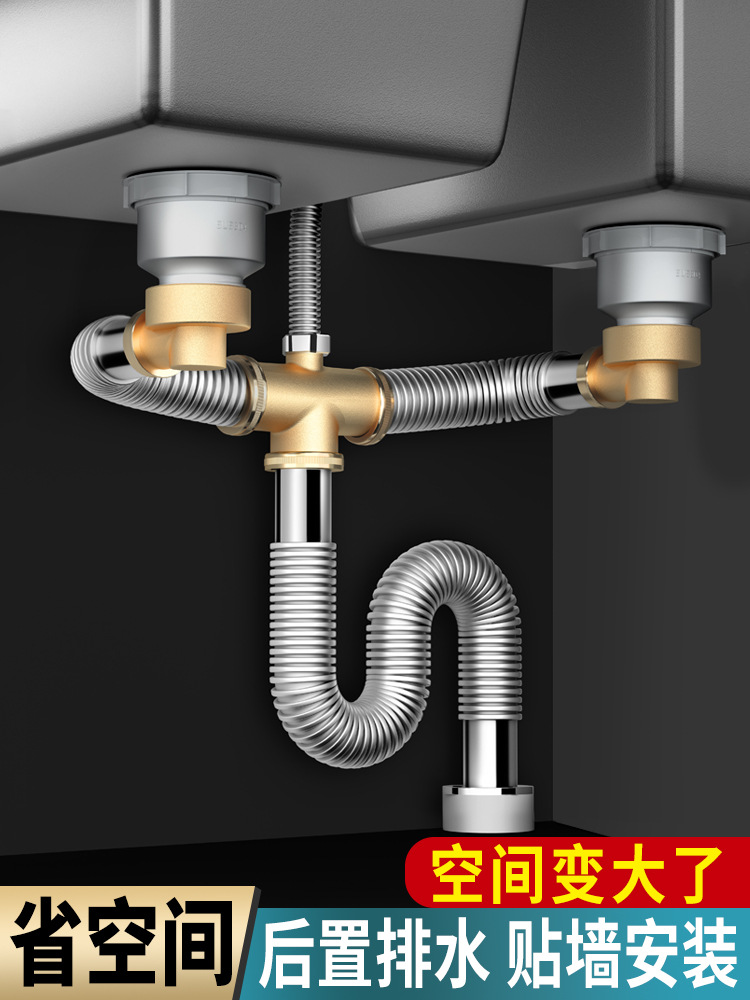 厨房洗菜盆下水管配件水槽单槽双槽洗碗池下水道排水管套装省空间