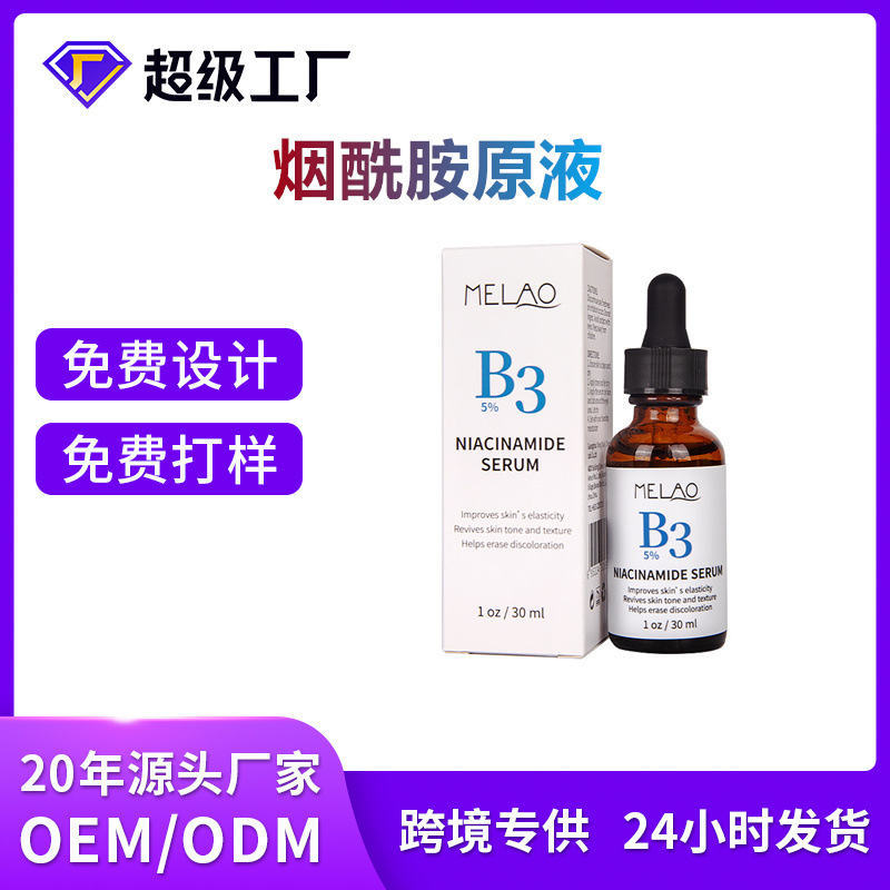 跨境MELAO品牌烟酰胺原液维生素B3补水保湿修护小黑瓶面部精华液