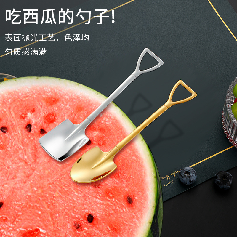 铁锹勺子创意可爱小勺子 不锈钢家用调羹吃西瓜铁铲勺甜品网红勺