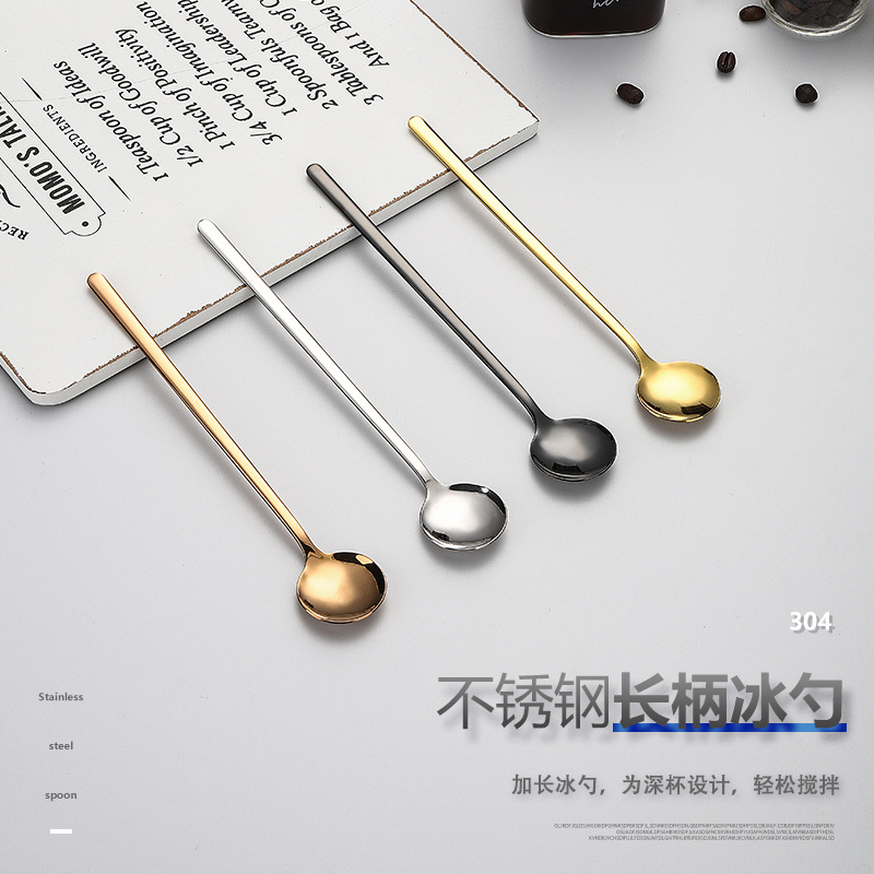 ins风304不锈钢小圆勺金色长柄迷你创意咖啡勺甜品奶茶搅拌网红勺