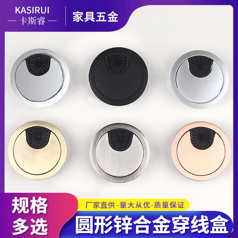 高档锌合金线孔盖现代简约圆形穿线孔电脑桌面穿线盒多功能走线盒