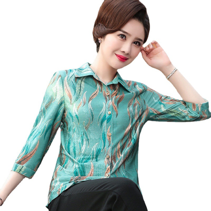 中老年长袖衬衫妈妈春季两件套50女夏装老人上衣服套装60奶奶衬衣