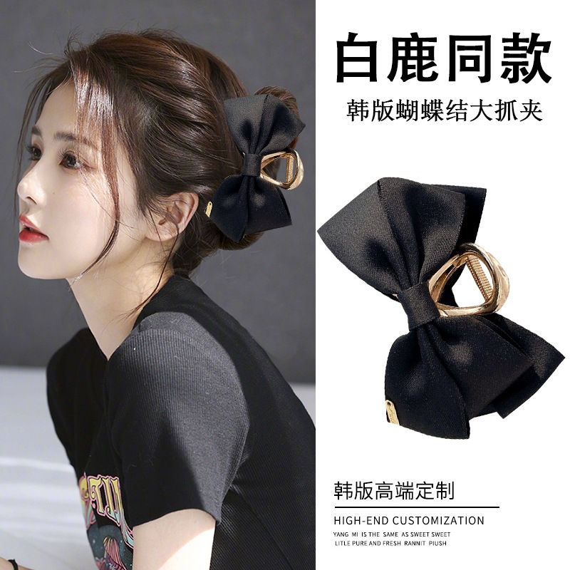 白鹿同款黑色双面蝴蝶结抓夹女夏季气质大号发夹后脑勺鲨鱼夹头饰