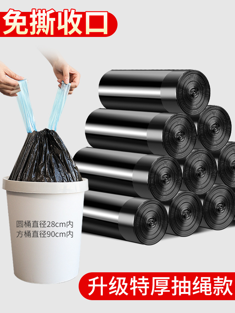 抽绳式垃圾袋家用手提式黑色加厚收口厨房办公室商用实惠大塑料袋
