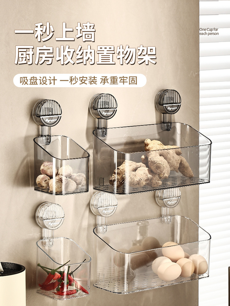 厨房葱姜蒜收纳筐吸盘置物架壁挂式调料架神器菜篮子免打孔小挂篮