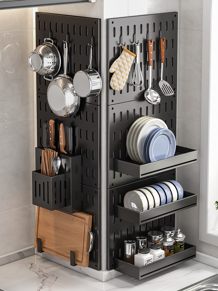 免打孔厨房洞洞板置物架壁挂式配件用品家用大全不锈钢挂架收纳架