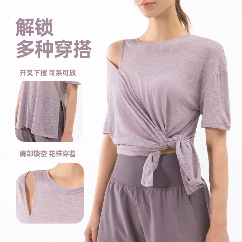 欧美轻薄速干运动t恤女瑜伽罩衫宽松休闲短袖上衣女健身服夏季