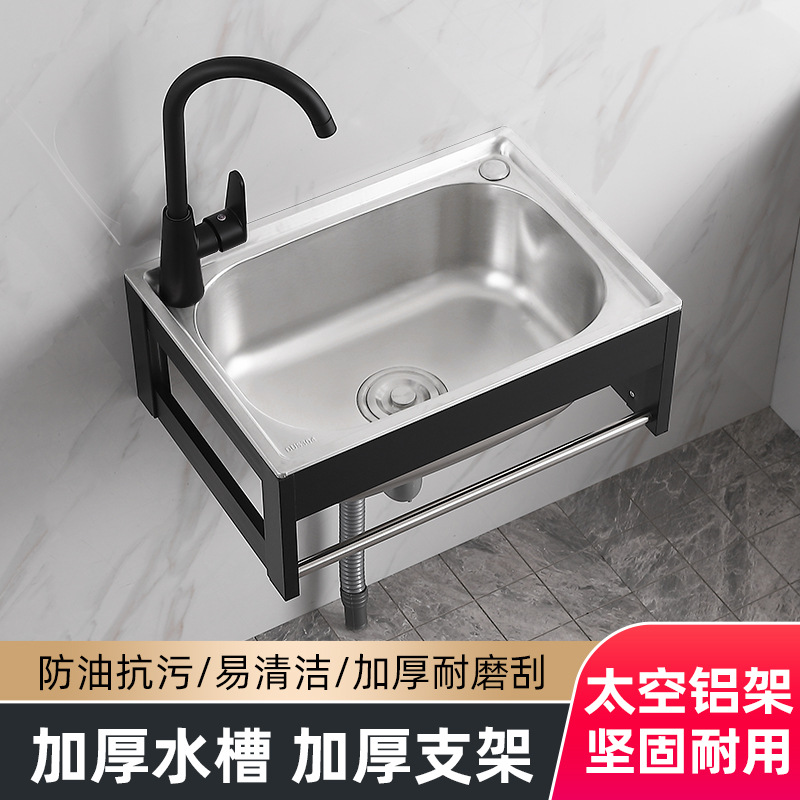 不锈钢挂墙水槽小单槽厨房简易洗菜盆洗碗池洗手盆水池单盆带支架